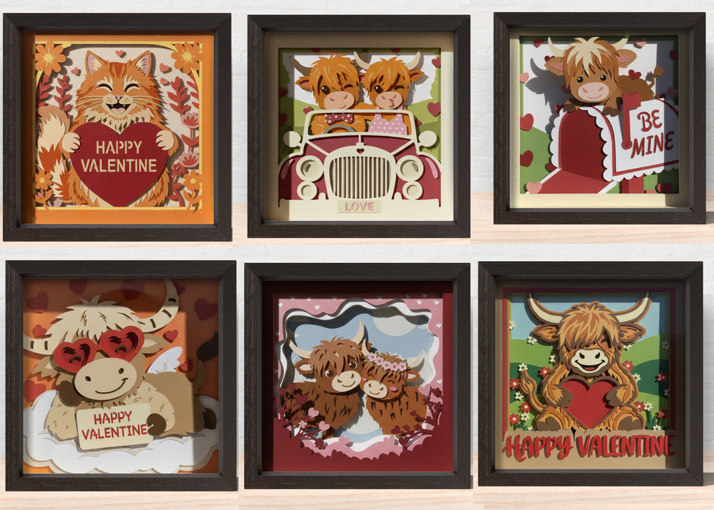 VALENTINE COW BUNDLE SHADOW BOX Svg (6 DESIGN)  - Cricut Files, Cardstock Svg, Silhouette Files - HelloCrafterSvg. These digital design are build in high quality to use in any kind of your product. Compatible with cricut, glowforge, silhouette machine, scan n cut. Shipped digital print, No wait for physical product. Purchase it and start building your design.